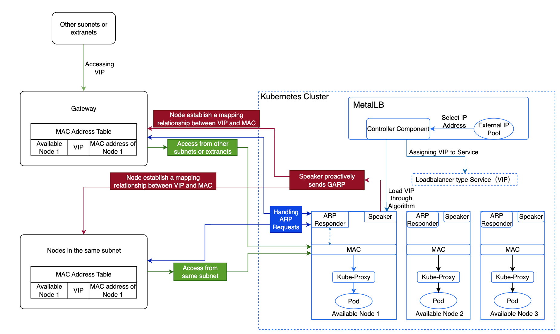By default, the platform uses MetalLB's ARP mode, and the specific implementation process and principles are as follows: